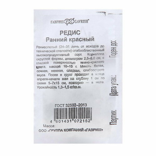 Семена Редис "Ранний красный", 2 г, 9 шт.