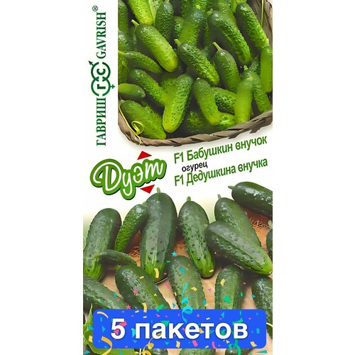 Семена овощей Гавриш "Огурец Бабушкин внучок F1 + Дедушкина внучка F1", 20 шт, серия Дуэт, 5 пакетов