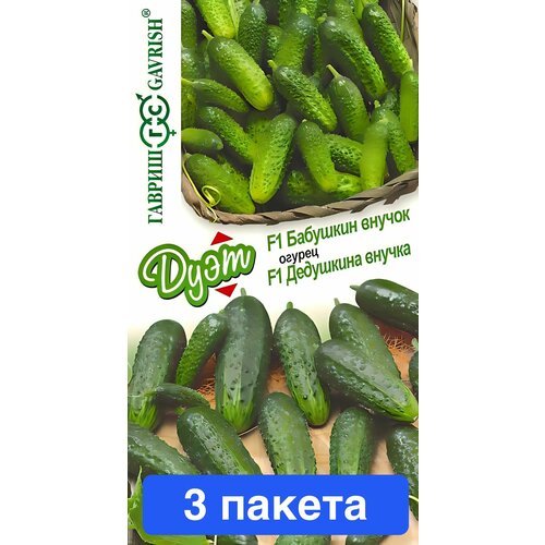 Семена овощей Гавриш "Огурец Бабушкин внучок F1 + Дедушкина внучка F1", 20 шт, серия Дуэт, 3 пакета