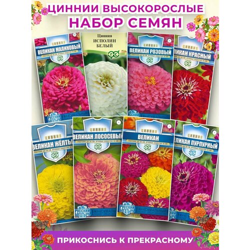 Набор семян цветов "Цинии" от Гавриш, серия высокорослых 8 сортов.