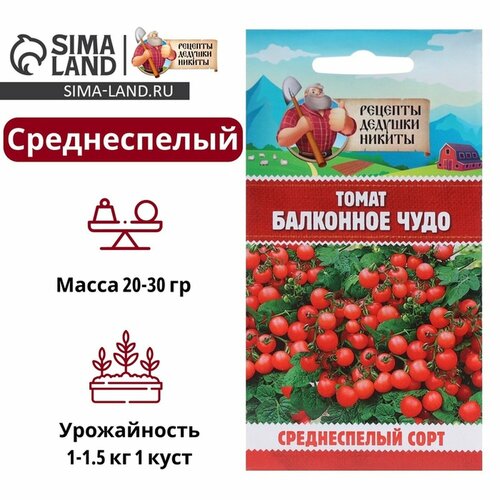 Семена Томат "Балконное чудо", ультраскороспелый, детерминантный, низкорослый, 0,1 г
