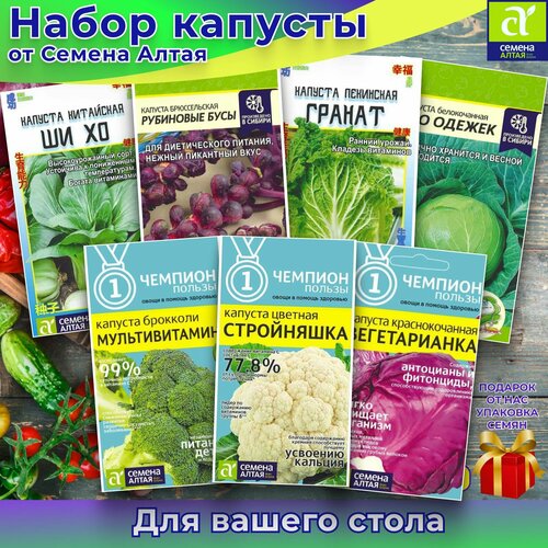 Набор семян капусты от "Семена Алтая" (Брокколи Мультивитамин, Брюссельская, Краснокочанная , Китайская Ши Хо, Сто Одежек )