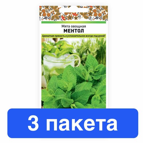 Семена зелени и пряностей Русский Огород "Мята овощная Ментол", 0,03 гр, 3 пакета