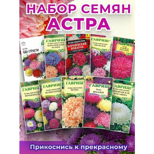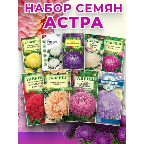 Набор семян цветов "Астра", 10 пакетов, однолетние, разные сорта
