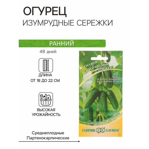 Семена Огурец "Изумрудные сережки" F1, корнишон, раннеспелый, партенокарпический, 10 шт