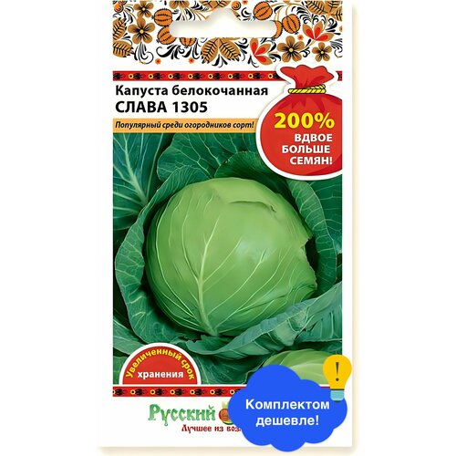 Семена овощей Русский Огород "Капуста б/к Слава 1305", 200% NEW, 1,5 гр.