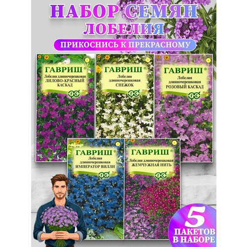 Семена цветов "Лобелия", однолетние, набор из 5 упаковок.