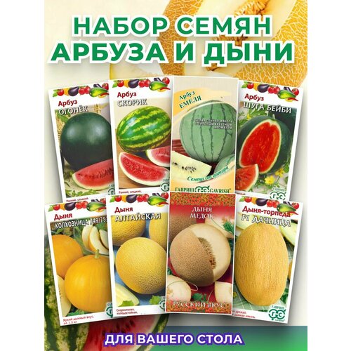 Набор семян Арбузы и Дыни, 8 сортов, раннеспелые, однолетние.