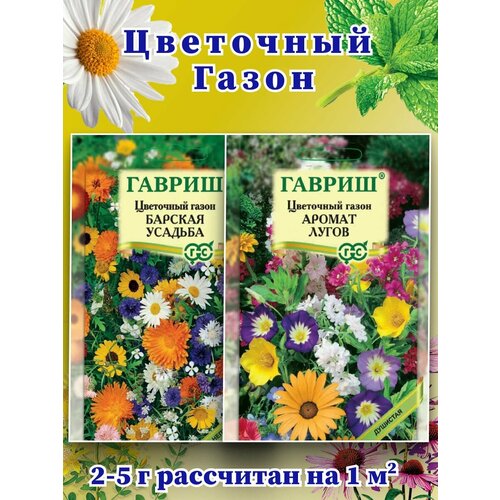 Цветочный газон "Аромат Лугов и Барская Усадьба", душистый, неприхотливый 2 упаковки по 30 грамм.