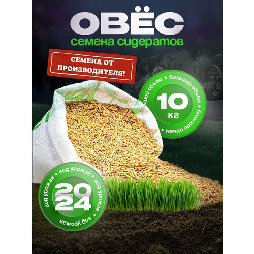 Семена Овес 10 кг Сидераты для огорода и сада Зеленый Уголок