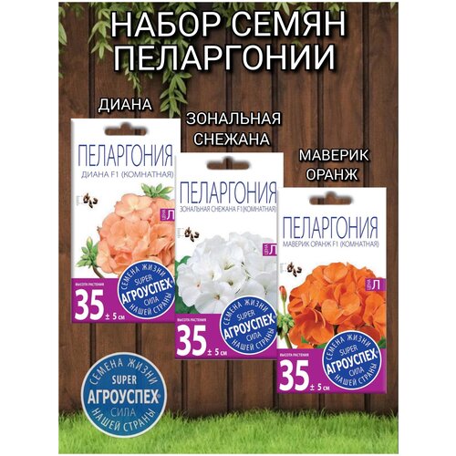 Семена комнатных цветов Агроуспех набор Пеларгонии: Снежана белая F1, Диана F1, Маверик Оранж F1