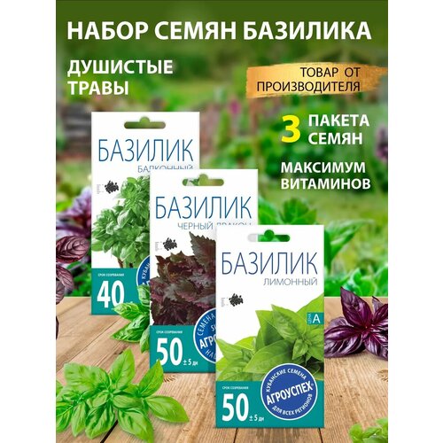 Комплект Базилик Балконный/Базилик Лимонный аромат/Базилик Черный дракон 3шт (70) Агроуспех Хороший срок годности