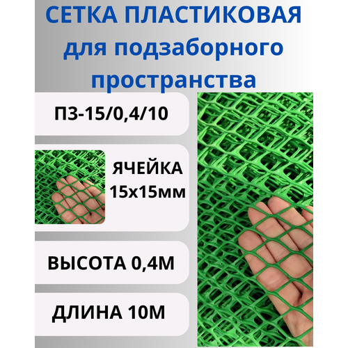 ПЗ-15/0,4/10 Сетка для подзаборного пространства 15х15мм, рулон 0,4х10 метров, Зеленый