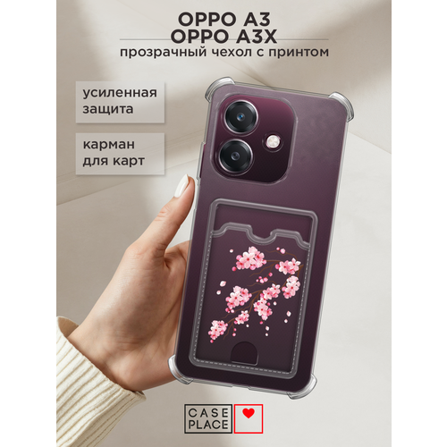 Чехол на Oppo A3/A3x (Оппо А3/A3x) с картой и принтом Ветка сакуры