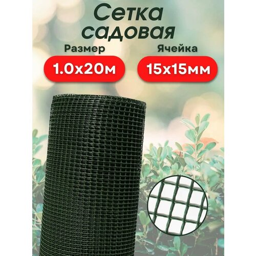 Сетка садовая заборная для огорода и сада 1х20м (15*15) хаки
