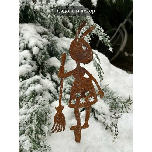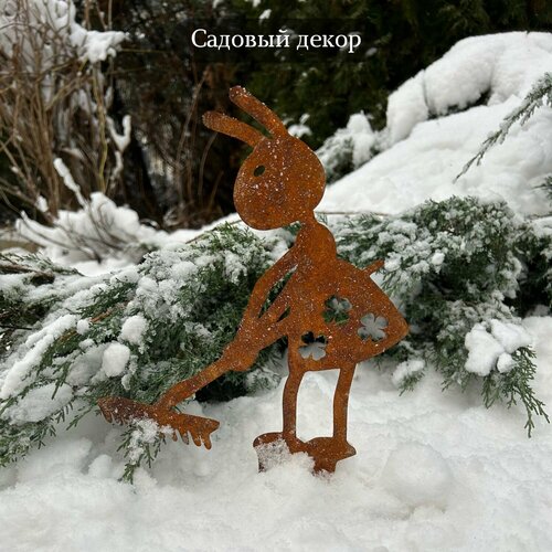 Садовая фигура "Муравей девочка с граблями", ржавый декор, 30 см, метал