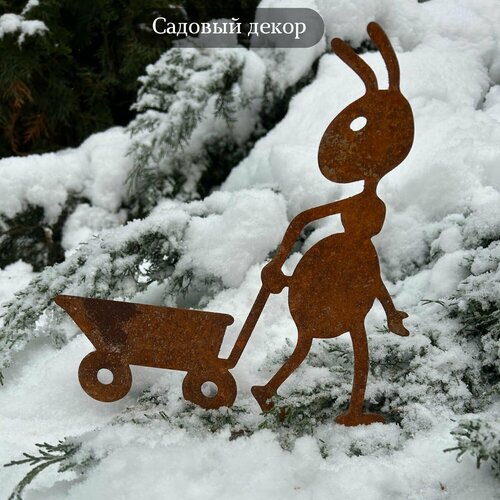 Садовая фигура "Муравей с тачкой", ржавый декор, 32 см, металл