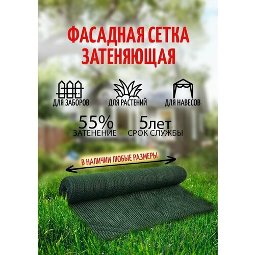 Сетка фасадная затеняющая 2м х 30м - 55 гр/м2 - для забора, теплиц, растений, огорода, навеса, от солнца и посторонних глаз