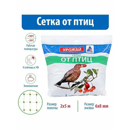Укрывная сетка от птиц Протэкт 2х5 м (10 м2), пластиковая ячейка 16х16 мм, садовая для защиты урожая
