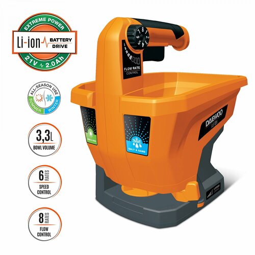 Сеялка-разбрасыватель аккумуляторная DAEWOO DASP 321Li без АКБ и ЗУ черный, оранжевый