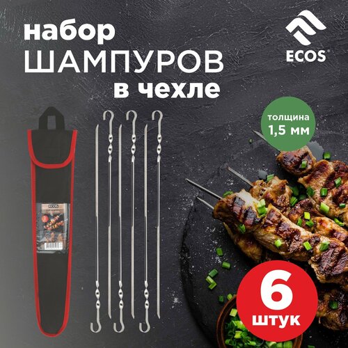 Набор шампуров ECOS 450*10*1,5мм, угловой, с витком, 6шт, в чехле