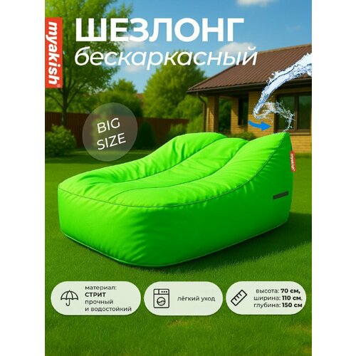 Бескаркасный шезлонг Myakish Лаунж, зелёный/оксфорд, без каркаса, 150x110x70 см