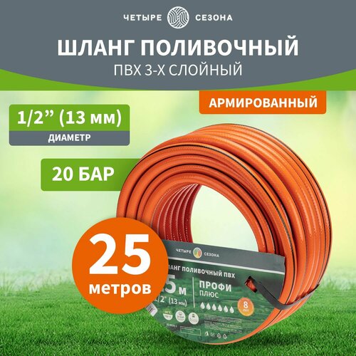 Шланг поливочный ПВХ 3-х слойный армированный 1/2" 25м четыре сезона