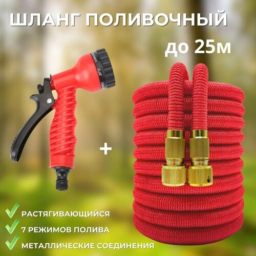 Шланг садовый поливочный растягивающийся 25 метров, с фитингами и распылителем