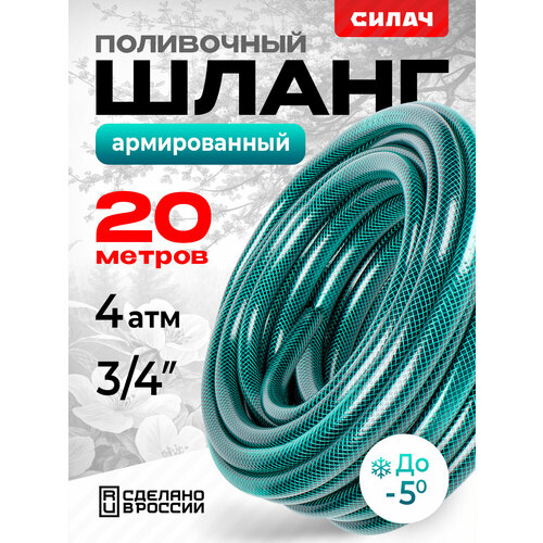 Шланг поливочный 3/4 садовый ПВХ "СИЛАЧ" ЭКО армированный, трехслойный, высокопрочный, длина 20 м