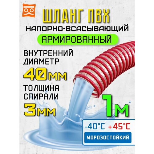 Напорно-всасывающий шланг для откачки 40 мм (1 метр), Морозостойкий, Армированный ПВХ шланг для насосов