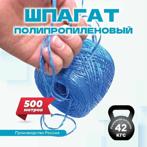 Шпагат для подвязки растений 500 м, полипропиленовый, крепежный для дачи и сада, цвет синий