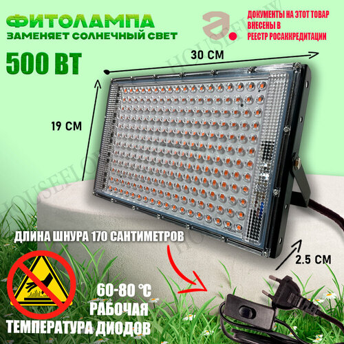 Фитолампа для растений и рассады 500 вт, светильник линейный для цветов и всех типов зелени - полный спектр