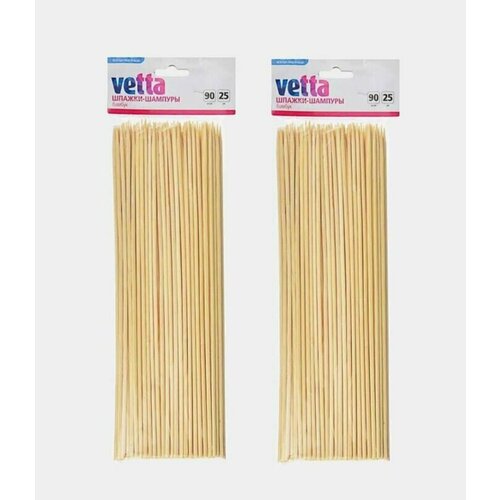 Шпажки-шампуры деревянные Vetta для шашлыка, фруктовых и мясных букетов, 90 шт, 25 см, d.3 мм, бамбук, набор 2 упаковки