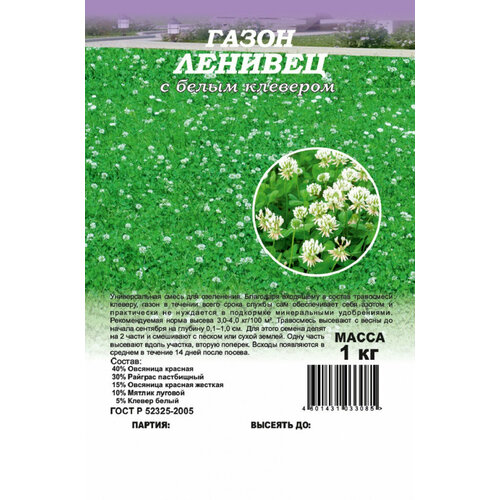 Семена Газон Ленивец с белым клевером 1,0 кг
