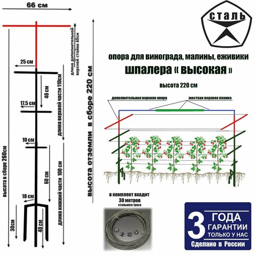 Комплектация: Трос - 20м диаметр с ПВХ покрытием 1,2мм, фиксатор троса - 4 шт. Трос является опорой для растений и выдерживают нагр...