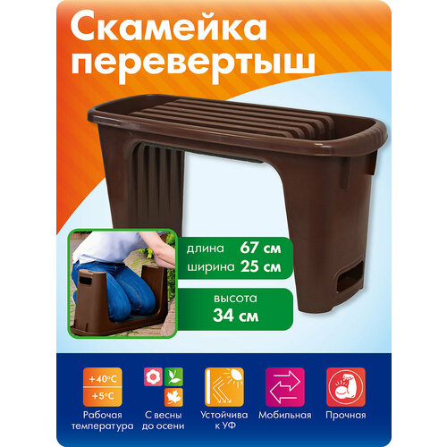 зеленый, серый, зелeныйДачная скамейка перевертыш от бренда Ника незаменимый предмет садового инвентаря для любого дачника. Садовая складная скамейка для дачи, работы в саду, активного отдыха и рыбалки. 2 рабочие стороны: используется как садовый стул или подставка под колени для облегчения процесса прополки сорняков, посадки и сбора урожая. Защитит одежду от загрязнения, а ваши ноги не будут мерзнуть, соприкасаясь с влажной землёй. Оригинальная устойчивая скамейка поможет снять нагрузку с колен и спины. Упор на боковые ручки поможет сесть и встать во время дачных работ. Каркас выполнен из металлической трубы, сиденье - из пластика. Легко складывается и занимает минимум места. Удобна при транспортировке в багажнике. Отличный подарок для туристов, дачников и рыбаков! Нагрузка 100 кг.