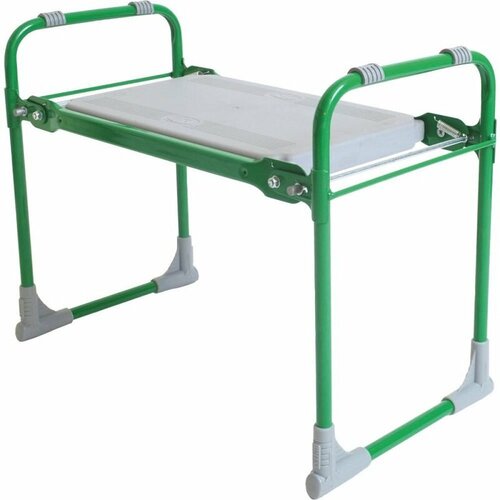 Скамейка имеет две рабочие стороны, что позволяет использовать ее с обеих сторон. В перевернутом положении удобно работать на дачном участке, опираясь коленями во время посадки, прополки и сбора урожая, сохраняя одежду чистой.