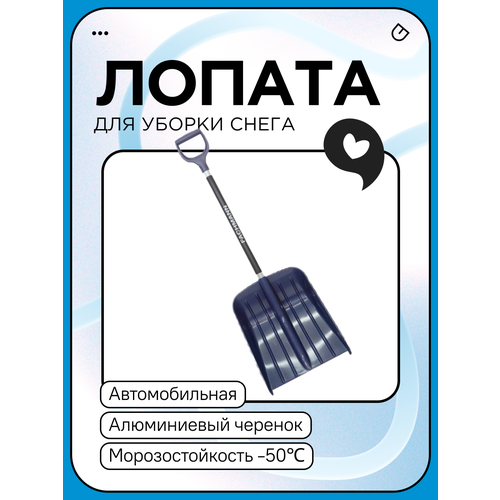 Лопата автомоб. снег. "Fachmann" 460*370мм с план, темн-син, В сборе с алюмин. черенк(d-32) и D-руч