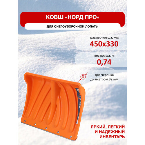 Ковш для лопат NordPro 45x33см, оранжевый, ковш с бортом, пластик, длина 33см