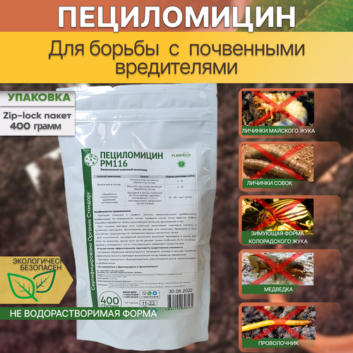 Planteco Биоинсектицид Пециломицин РМ116 для борьбы с почвенными вредителями 400 г не водорастворимая форма