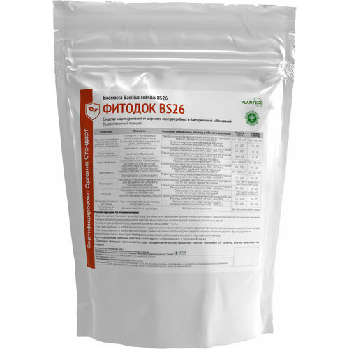 Биофунгицид Фитодок BS26. Биопрепарат от грибковых и бактериальных заболеваний растений, 1 кг Planteco