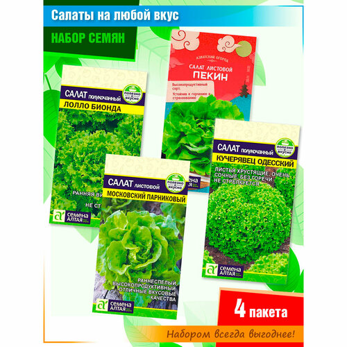 Набор семян листовых и полукочанных салатов от Семена Алтая (4 пачки)