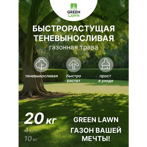 Семена газона быстрорастущего, травосмесь теневыносливая Green lawn, 20 кг