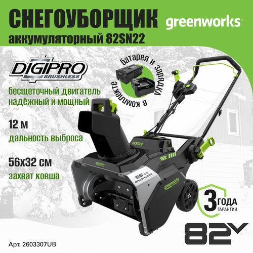 Снегоуборочная машина Greenworks 2603307UB, снегоуборщик аккумуляторный 82V, 56 см, АКБ 5АЧ и ЗУ