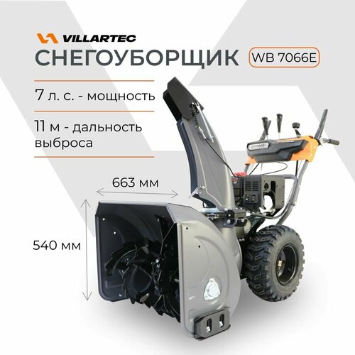 Снегоуборщик бензиновый самоходный с электростартером, подогревом ручек и светодиодной фарой VILLARTEC WB7066E 7л. с.