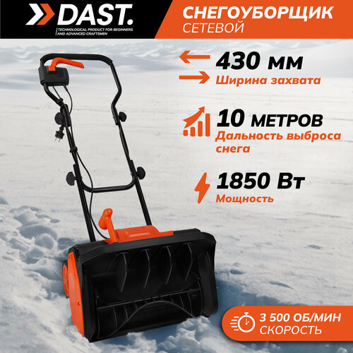 Снегоуборщик электрический DAST 1850 Вт, широкий ковш 43x15 см