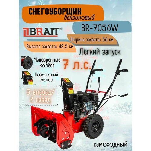 Снегоуборщик бензиновый Brait BR-7056W / снегоочиститель / машина для уборки снега / брайт / самоходный