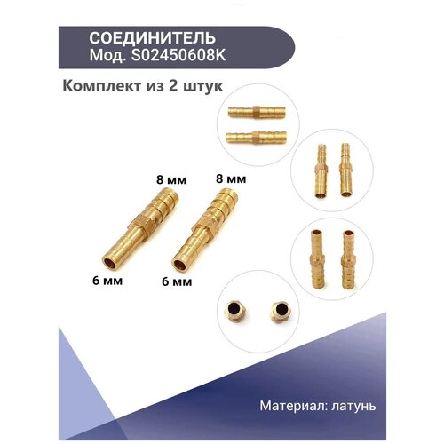 Соединитель для шлангов прямой переходной 6мм-8мм латунный KONNENFIT (комплект из 2 шт)