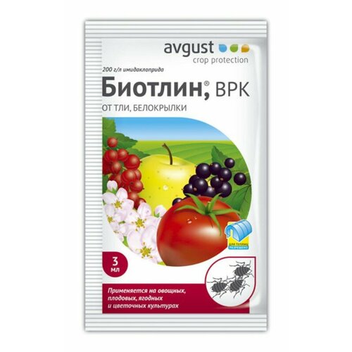 Средство Биотлин Avgust от тли, белокрылки, трипсов на плодовых, ягодных, овощных и цветочных культурах, 9 мл
