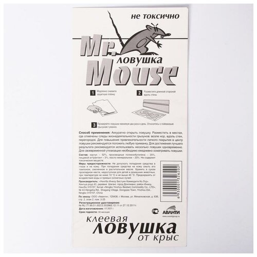 Пластина клеевая от крыс Mr.Mouse, без упаковки, 1шт